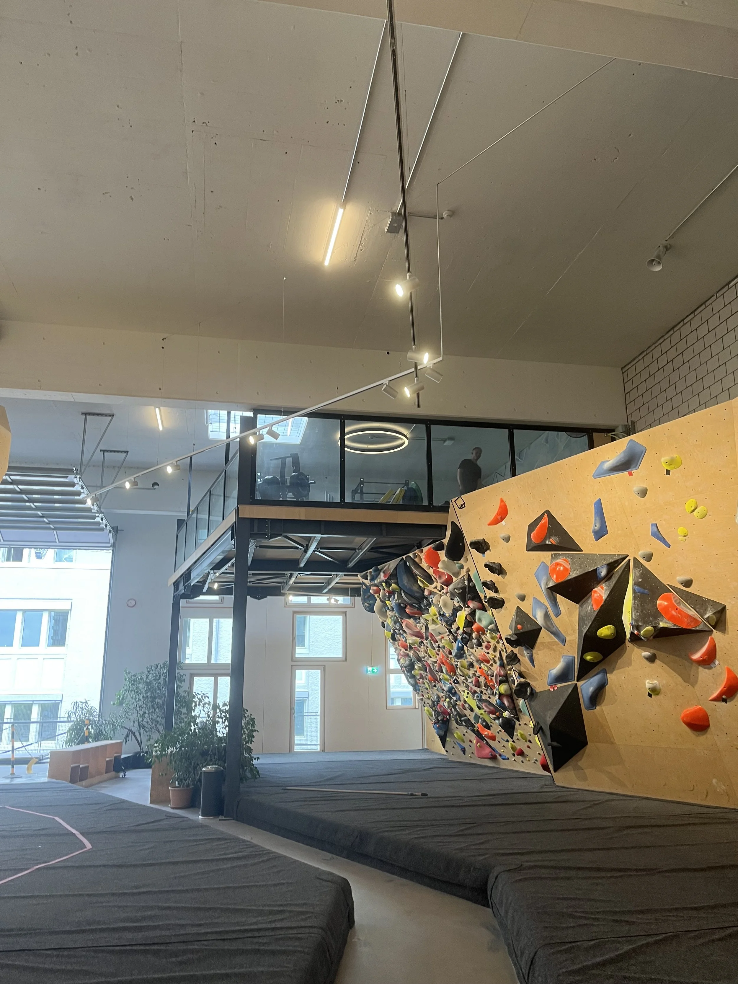 Auf der Kraftterasse gibt es schwere Geräte und Gewichte. Dort darfst du nur mitmachen, wenn du schon 16 Jahre oder älter bist und weisst, wie man sicher trainiert.